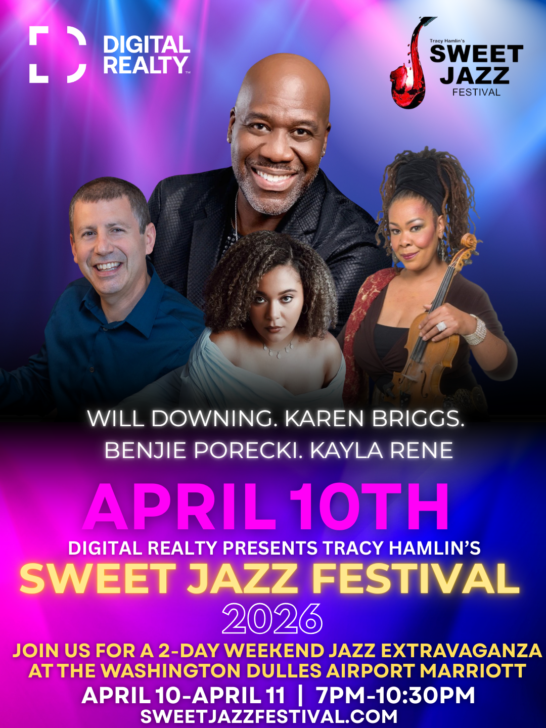 Live at Sweet Jazz Festival 2026 with Will Downing Live at Sweet Jazz Festival 2026 with Will Downing by Sweet Jazz Festival & Concerts 26 26 people viewed this event. Register for event To register for this event please visit the following URL: https://www.sweetjazzfestival.com → Date And Time 2026-04-10 @ 07:00 PM to 2026-04-10 @ 10:00 PM Location Washington Dulles Airport Marriott Share With Friends Facebook Twitter Linkedin Xing Pinterest
